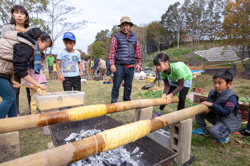新米を使ったお餅や、竹を使ったバンブークーヘンなどをみんなで頂きます。