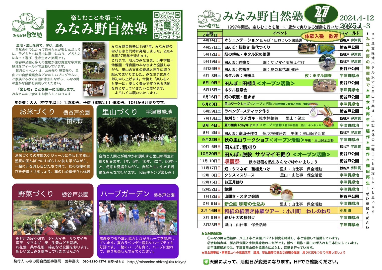 みなみ野自然塾2024年度活動計画です。