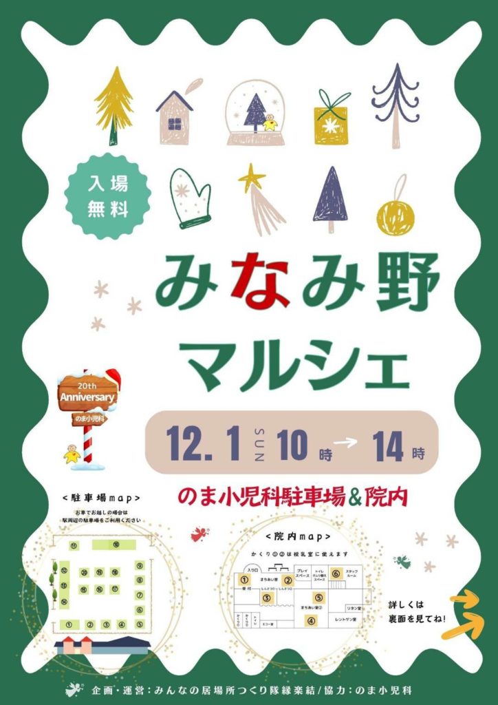 未分類2024.11.09みなみ野マルシェに出展決定! ポスト シェア 送る コピーしました リンクをコピー 12月1日にのま小児科駐車場&院内で行われる「みなみ野マルシェ」に出展させていただくことが決定しました。みなみ野自然塾は駐車場で、活動の紹介や稲わらを使ったしめ縄、サツマイモのつるを使ったクリスマスリースなどを展示します。ぜひお越しください。