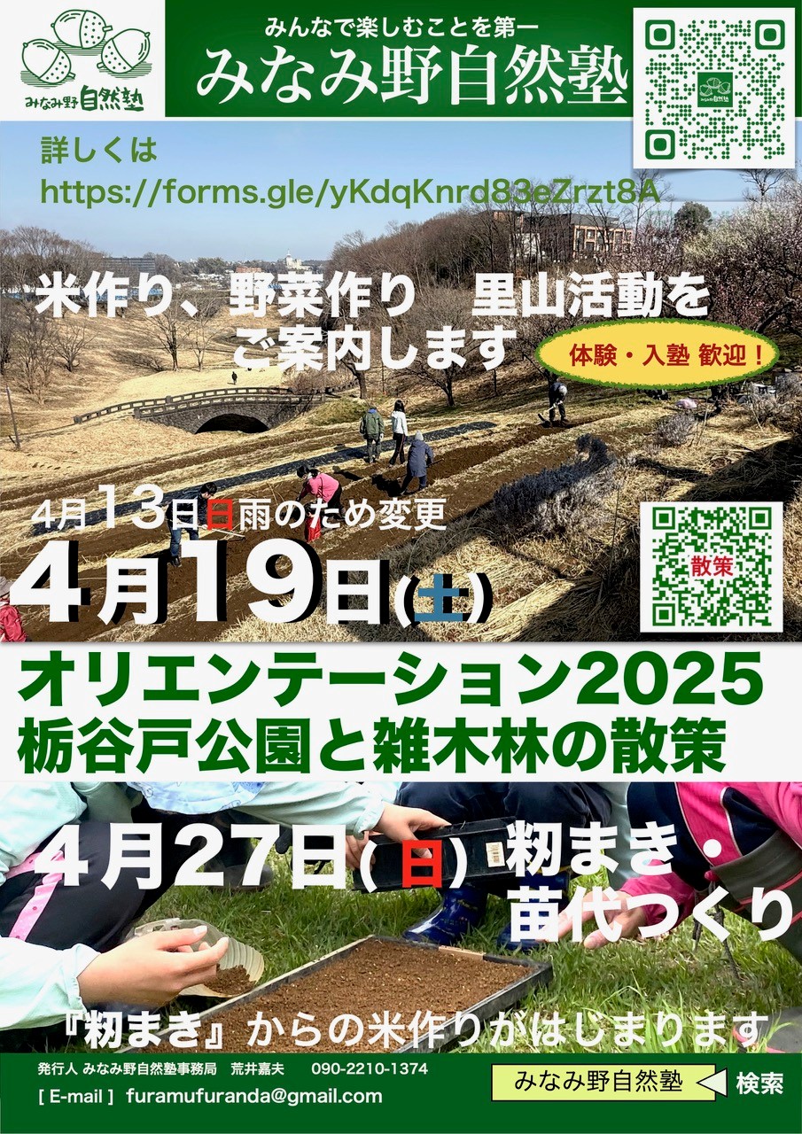 活動のお知らせ2025.04.154月19日 オリエンテーション2025・ホタル沢の整備 ポスト シェア 送る コピーしました リンクをコピー ※4月13日の活動は天候不良のため延期しました。4月19日(土)9:00~ オリエンテーション2025・ホタル沢の整備2025年度の活動が始まります。お申し込み等は、下記のGoogleフォームからお願いします。 読み込んでいます…