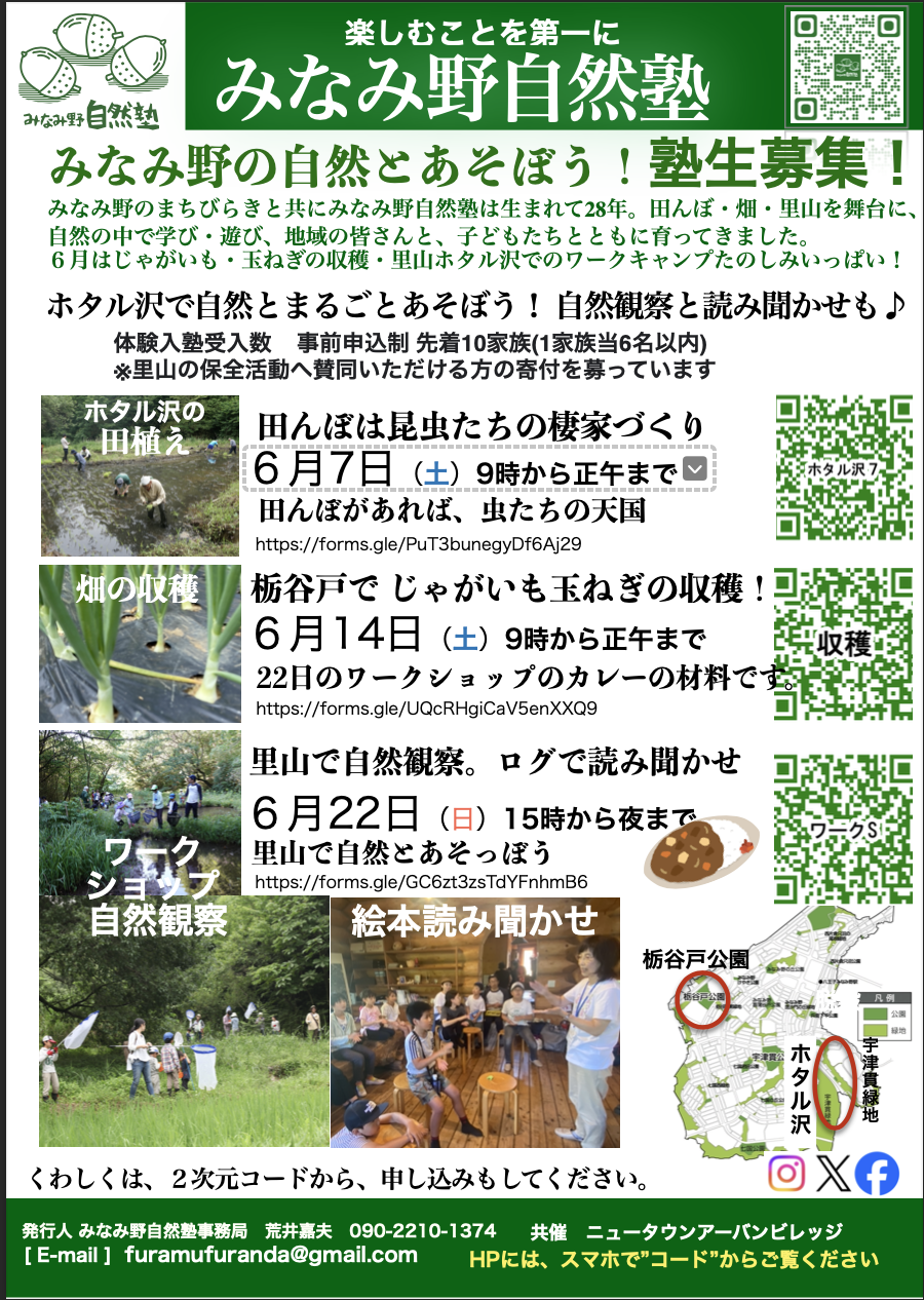 活動のお知らせ2025.06.066月14日 栃谷戸公園の野菜の収穫 ポスト シェア 送る コピーしました リンクをコピー 6月14日(土) 9:00〜 栃谷戸公園の野菜の収穫お申し込み等は、下記のGoogleフォームからお願いします。 読み込んでいます…